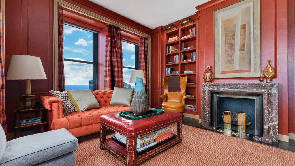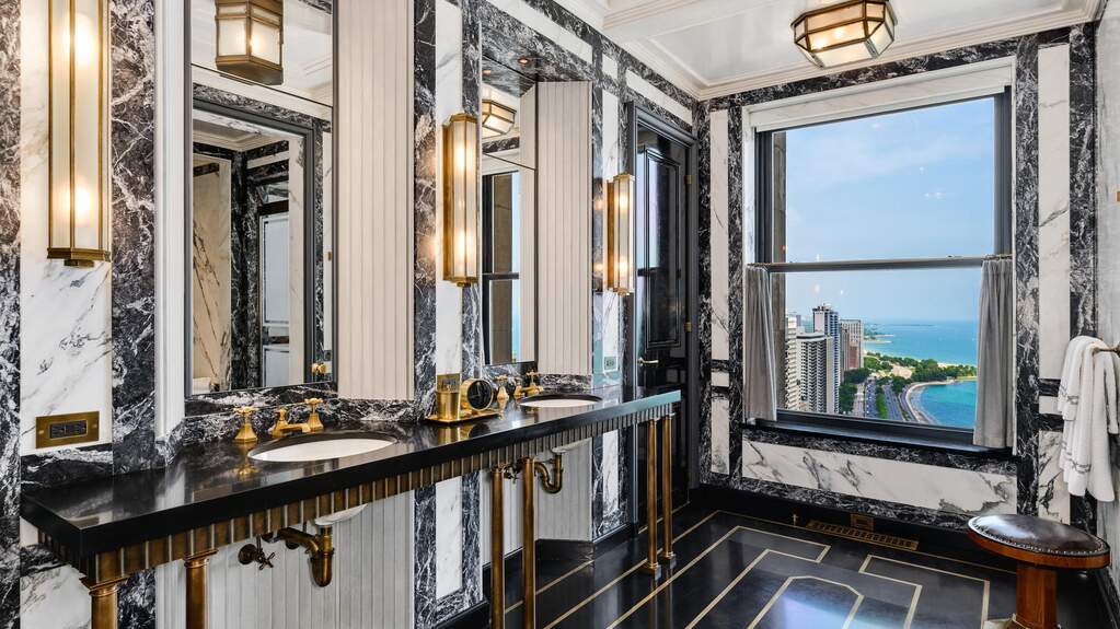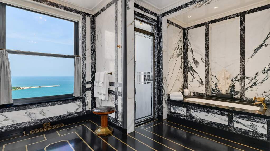 A full‑floor Art Deco residence in the landmark Palmolive Building offers 5,500 sq ft of refined living with 3 bedrooms, 3.5 baths, and a private elevator foyer for discreet arrival.